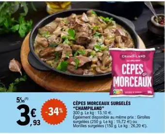 Actuellement en offre chez E.Leclerc : CÈPES MORCEAUX SURGELÉS CHAMPILAND ✅ Valable du 17-02 au 28-02.