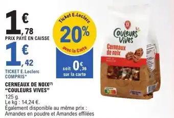 Actuellement en offre chez E.Leclerc : Cerneaux de noix couleurs vives ✅ Valable du 3-02 au 21-02.