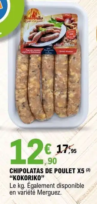 CHIPOLATAS DE POULET X5 “KOKORIKO” offres et promotions en ligne chez E.Leclerc