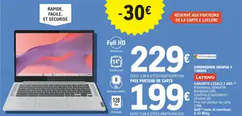 Actuellement en offre chez E.Leclerc : Chromebook ideapad 3 14m868 lenovo ✅ Valable du 3-02 au 14-02.