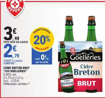 Actuellement en offre chez E.Leclerc : Cidre breton brut les goelleries ✅ Valable du 30-12 au 10-01.
