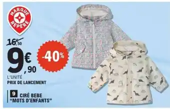 Offre CIRÉ BÉBÉ 'MOTS D'ENFANTS' chez E.Leclerc