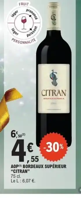 Actuellement en offre chez E.Leclerc : CITRAN Aop bordeaux supérieur ✅ Valable du 23-12 au 3-01.