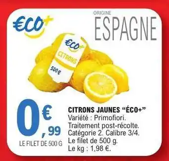 Offre CITRONS JAUNES “ÉCO+” chez E.Leclerc