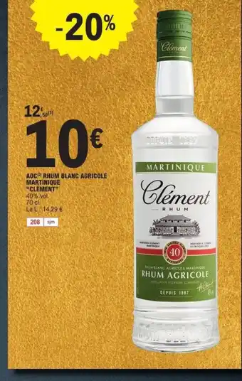 CLÉMENT Aoc rhum blanc agricole martinique offres et promotions en ligne chez E.Leclerc