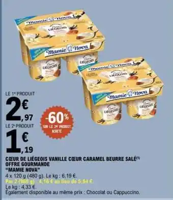 Actuellement en offre chez E.Leclerc : Cœur de Liégeois Vanille Coeur Caramel Beurre Salé ✅ Valable du 30-12 au 10-01.