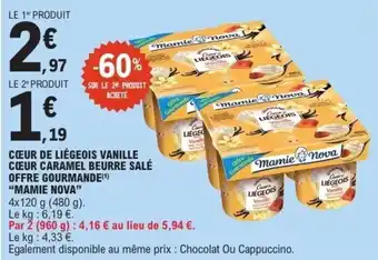Offre Cœur de liégeois vanille cœur caramel beurre salé offre gourmande mamie nova chez E.Leclerc