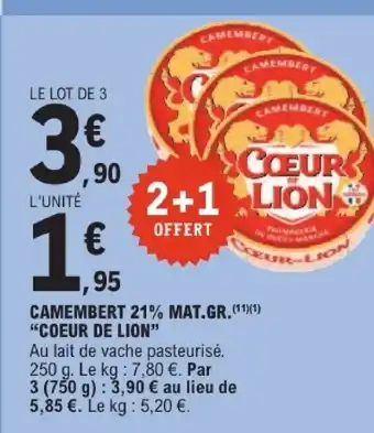 Offre COEUR DE LION Camembert 21% mat.gr. chez E.Leclerc