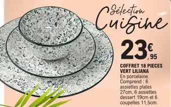 Actuellement en offre chez E.Leclerc : Coffret 18 pieces vert liliana ✅ Valable du 21-04 au 3-05.