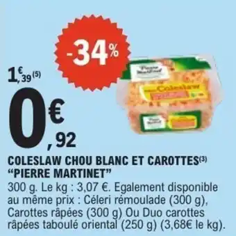 Actuellement en offre chez E.Leclerc : Coleslaw chou blanc et carottes pierre martinet ✅ Valable du 10-03 au 21-03.