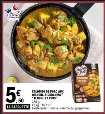Offre COLOMBO DE PORC AUX OIGNONS & CURCUMA “TENDRE ET PLUS” chez E.Leclerc