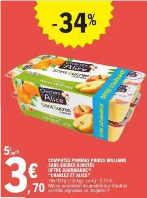 Actuellement en offre chez E.Leclerc : COMPOTES POMMES POIRES WILLIAMS SANS SUCRES AJOUTÉS ✅ Valable du 27-01 au 7-02.