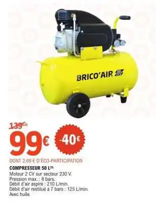 Actuellement en offre chez E.Leclerc : COMPRESSEUR 50 L ✅ Valable du 27-01 au 7-02.