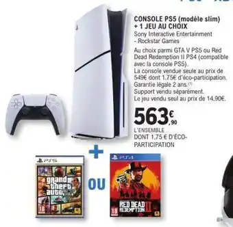 Actuellement en offre chez E.Leclerc : CONSOLE PS5 (modèle slim) + 1 JEU AU CHOIX ✅ Valable du 13-01 au 31-01.