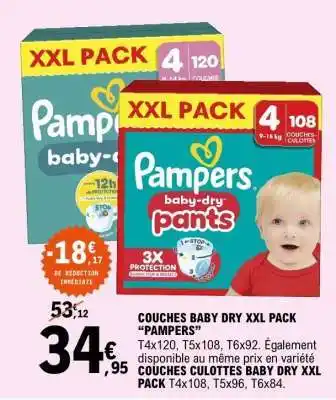 En plus de l'offre COUCHES BABY DRY XXL PACK “PAMPERS”, E.Leclerc propose une large gamme de produits. Consultez le Catalogue E.Leclerc hebdomadaire pour découvrir les meilleures offres et promotions. En plus de COUCHES BABY DRY XXL PACK “PAMPERS”, il y a aussi : Pampers couches baby dry xxl, Couches pampers baby dry xxl & Pampers - couches baby dry xxl.