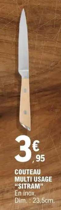 Actuellement en offre chez E.Leclerc : COUTEAU MULTI USAGE SITRAM ✅ Valable du 27-01 au 8-02.