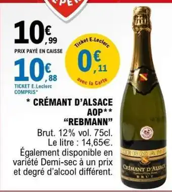 CRÉMANT D’ALSACE AOP 'REBMANN' offres et promotions en ligne chez E.Leclerc