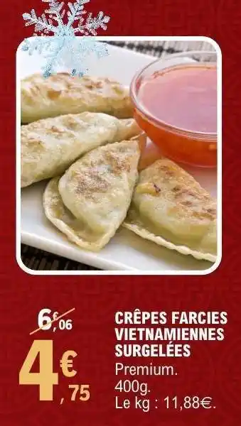 Actuellement en offre chez E.Leclerc : CRÊPES FARCIÉS VIETNAMIENNES SURGELÉES ✅ Valable du 10-02 au 22-02.