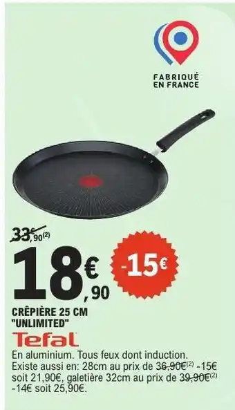 Actuellement en offre chez E.Leclerc : CRÊPIÈRE 25 CM UNLIMITED ✅ Valable du 20-01 au 31-01.