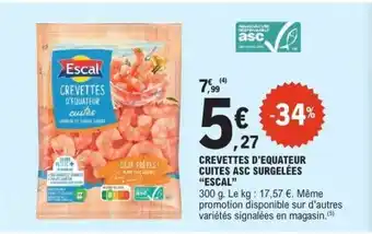 Actuellement en offre chez E.Leclerc : CREVETTES D'ÉQUATEUR CUITES ASC SURGELÉES “ESCAL” ✅ Valable du 7-04 au 18-04.
