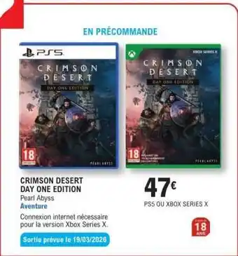 Actuellement en offre chez E.Leclerc : CRIMSON DESERT DAY ONE EDITION ✅ Valable du 10-03 au 28-03.