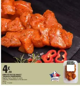 En plus de l'offre CUBES DE FILET DE POULET, E.Leclerc propose une large gamme de produits. Consultez le Catalogue E.Leclerc hebdomadaire pour découvrir les meilleures offres et promotions. En plus de CUBES DE FILET DE POULET, il y a aussi : VOLAILLES CHAMPENOISES Cubes de filet de poulet, Filet de poulet & Filet de poulet reghalal.
