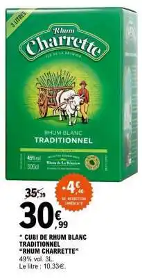 Actuellement en offre chez E.Leclerc : Cubi de Rhum Blanc Traditionnel 'Rhum Charrette' ✅ Valable du 10-02 au 22-02.