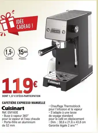 Actuellement en offre chez E.Leclerc : CUISINART Cafetière expresso manuelle ✅ Valable du 9-12 au 24-12.