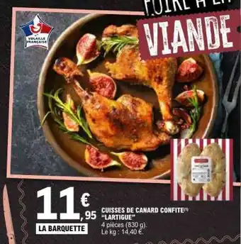 Actuellement en offre chez E.Leclerc : CUISSES DE CANARD CONFITE 'LARTIGUE' ✅ Valable du 20-01 au 31-01.