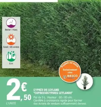 Actuellement en offre chez E.Leclerc : Cyprès de leyland cupressocy paris leylandii ✅ Valable du 3-03 au 14-03.