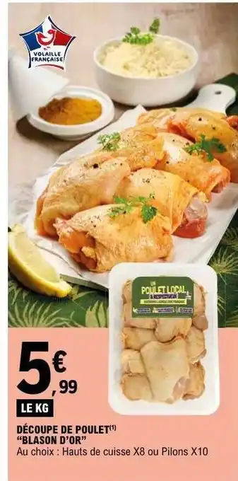En plus de l'offre DÉCOUPE DE POULET BLASON D’OR, E.Leclerc propose une large gamme de produits. Consultez le Catalogue E.Leclerc hebdomadaire pour découvrir les meilleures offres et promotions. En plus de DÉCOUPE DE POULET BLASON D’OR, il y a aussi : 8 FILETS DE POULET JAUNE BLASON D'OR, POULET PRÊT À CUIRE 'BLASON D’OR' & Découpe de coq.