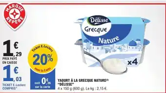 Actuellement en offre chez E.Leclerc : DÉLISSE Yaourt à la grecque nature ✅ Valable du 3-03 au 14-03.
