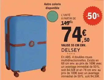 Actuellement en offre chez E.Leclerc : Delsey - valise 55 cm env ✅ Valable du 27-01 au 7-02.