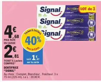 Actuellement en offre chez E.Leclerc : Dentifrice Signal ✅ Valable du 20-01 au 31-01.
