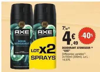 Offre Déodorant Atomiseur Axe chez E.Leclerc