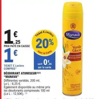 Actuellement en offre chez E.Leclerc : DÉODORANT ATOMISEUR “MANAVA” ✅ Valable du 5-05 au 16-05.