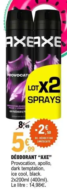 Actuellement en offre chez E.Leclerc : DÉODORANT AXE ✅ Valable du 24-02 au 8-03.