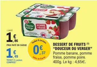 Actuellement en offre chez E.Leclerc : DESSERT DE FRUITS “DOUCEUR DU VERGER” ✅ Valable du 27-01 au 8-02.