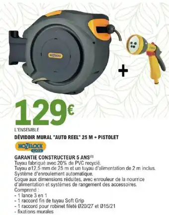 Offre DÉVIDOIR MURAL AUTO REEL+ PISTOLET HOZELOCK chez E.Leclerc