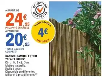 Actuellement en offre chez E.Leclerc : Dim - canisse bambou entier beaux jours ✅ Valable du 3-03 au 14-03.
