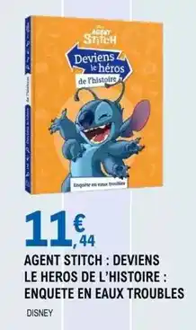 Actuellement en offre chez E.Leclerc : Disney - agent stitch: deviens le heros de l'histoire: enquete en eaux troubles ✅ Valable du 13-01 au 25-01.