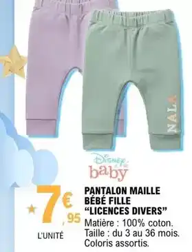 Offre Disney - pantalon maille bébé fille liscences divers chez E.Leclerc