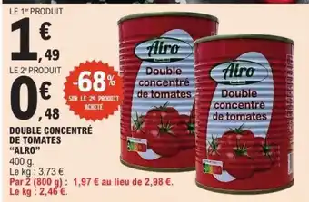 Actuellement en offre chez E.Leclerc : Double concentré de tomates Alro ✅ Valable du 10-02 au 21-02.