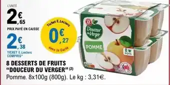 Actuellement en offre chez E.Leclerc : Douceur du verger - 8 desserts de fruits ✅ Valable du 2-01 au 11-01.