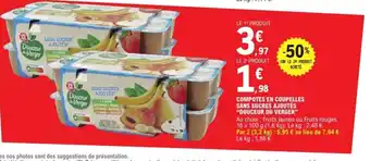 Actuellement en offre chez E.Leclerc : DOUCEUR DU VERGER Compotes en coupelles sans sucres ajoutés ✅ Valable du 3-02 au 14-02.