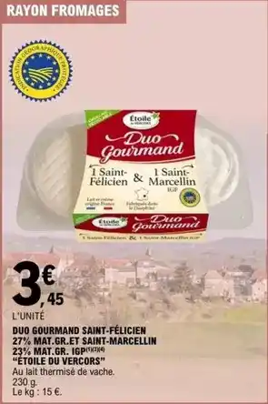 Actuellement en offre chez E.Leclerc : Duo gourmand saint-felicien 27% mat. gr. et saint-marcellin ✅ Valable du 17-02 au 28-02.