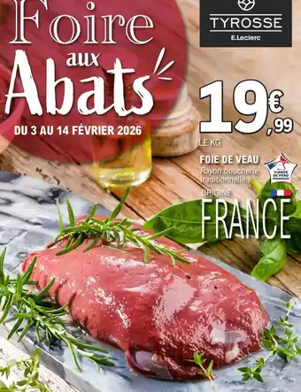 Actuellement en offre chez E.Leclerc : E.leclerc - foie de veau ✅ Valable du 3-02 au 14-02.