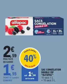 Actuellement en offre chez E.Leclerc : E.leclerc - sac congélation double zip ✅ Valable du 30-12 au 10-01.