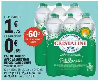 Actuellement en offre chez E.Leclerc : Eau de source avec adjonction de gaz carbonique 'Cristaline' ✅ Valable du 7-04 au 18-04.