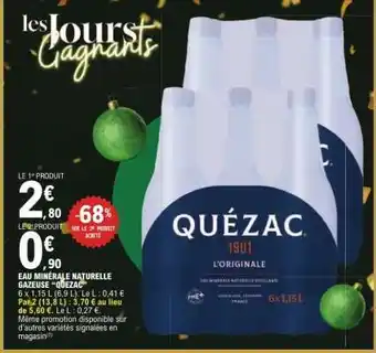 Actuellement en offre chez E.Leclerc : Eau Minerale Naturelle Gazeuse Quezac ✅ Valable du 30-12 au 10-01.